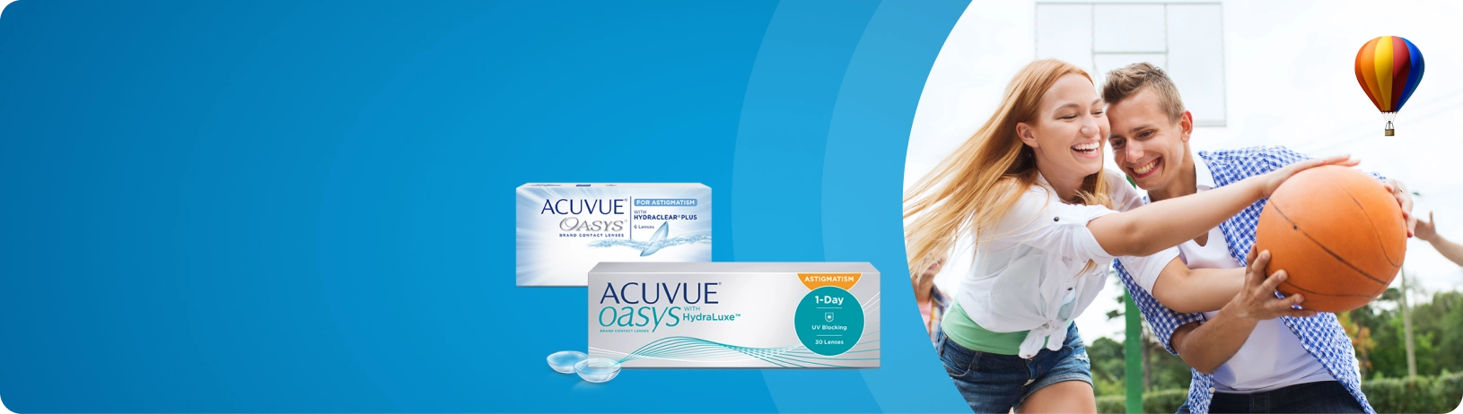 • 1 купон на 1 000 бонусных баллов начисляются в виде скидки на покупку 2 стандартных (30 шт) упаковок однодневных торических линз ACUVUE® OASYS with HYDRALUXE® for Astigmatism