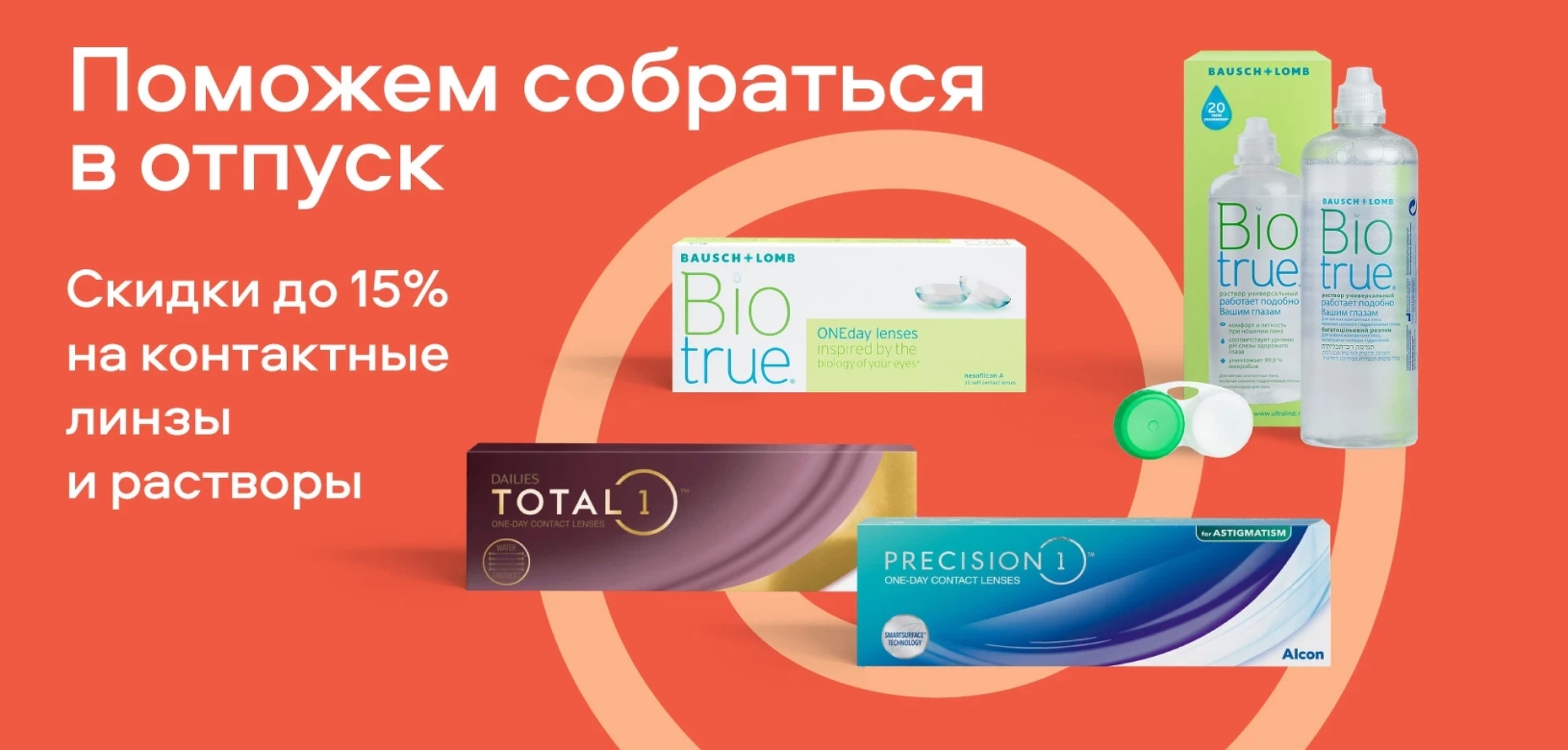 Лето, солнце, свежий воздух… Идеальная пора, чтобы взять паузу от работы и переместиться в новое место. Разумеется, не забыв заранее приобрести в «Очкарик» необходимые контактные линзы и растворы со .